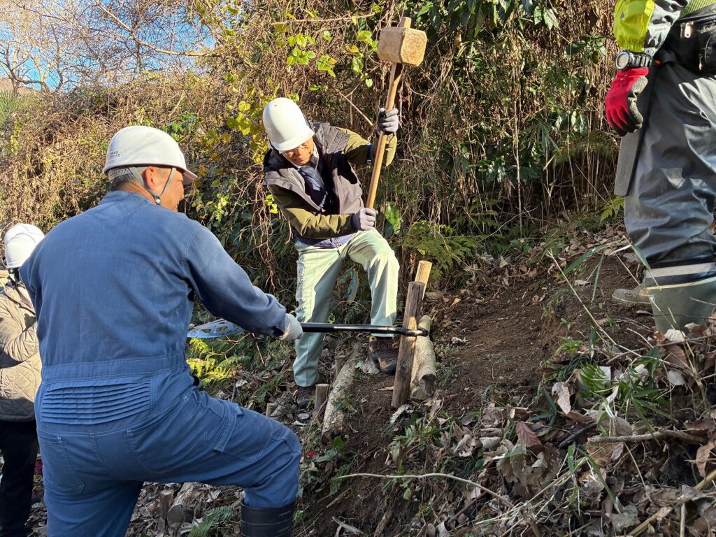 - 活動内容:AM 林野庁交付金活動、さと☆ぼら講習(階段作り、シイタケ植菌)