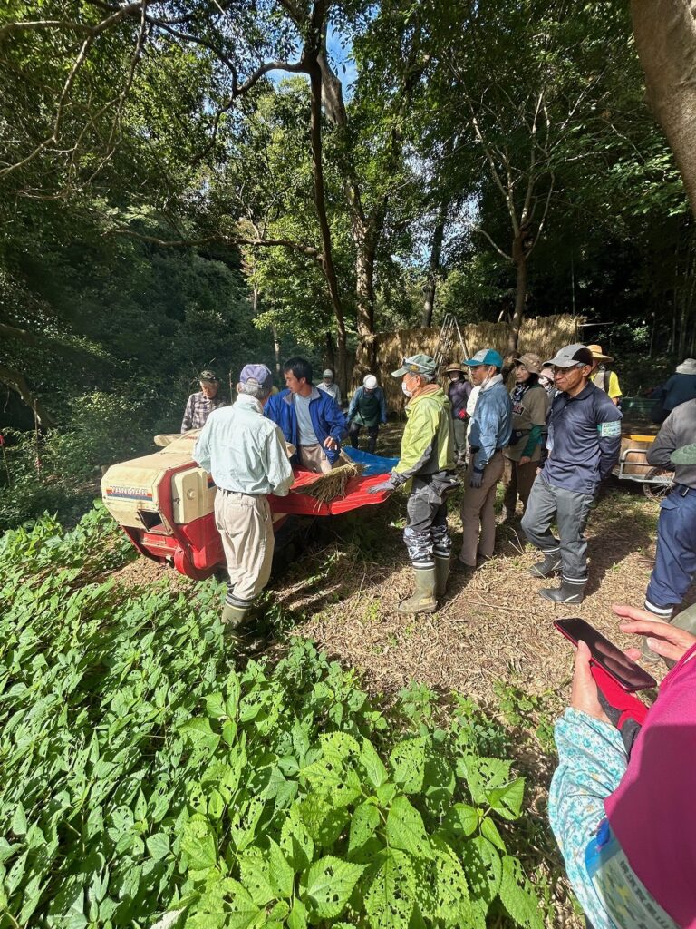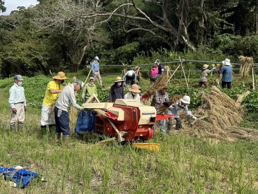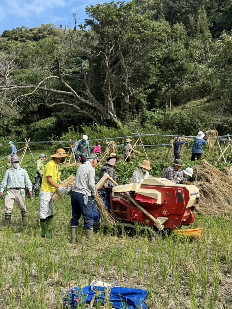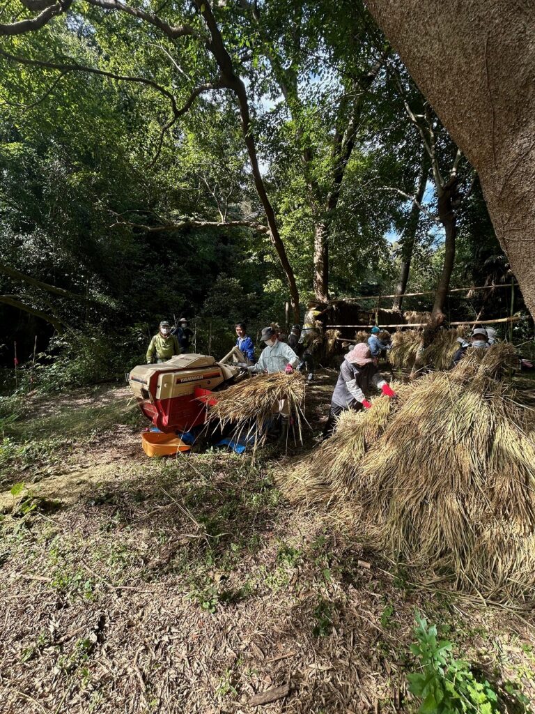 南田んぼと5段田んぼの脱穀が終了し、親子田んぼに移動して脱穀を再開しました。親子田んぼではもち米を栽培したので、11月の収穫祭では餅つきを行い、皆さんと収穫の喜びを分かち合いたいと思います。