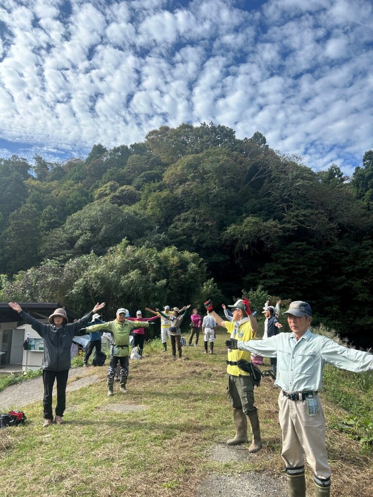 先週は雨のため、脱穀が延期になりました。今日は秋らしい晴れた空の下、さとたん会員とさとボラ講習生が脱穀を行いました。