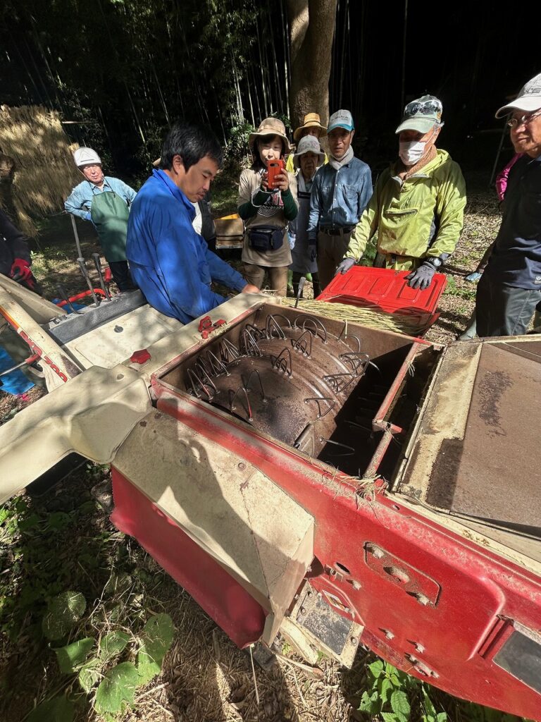 一年ぶりの脱穀作業なので、脱穀機の操作方法をおさらいから始めます。
