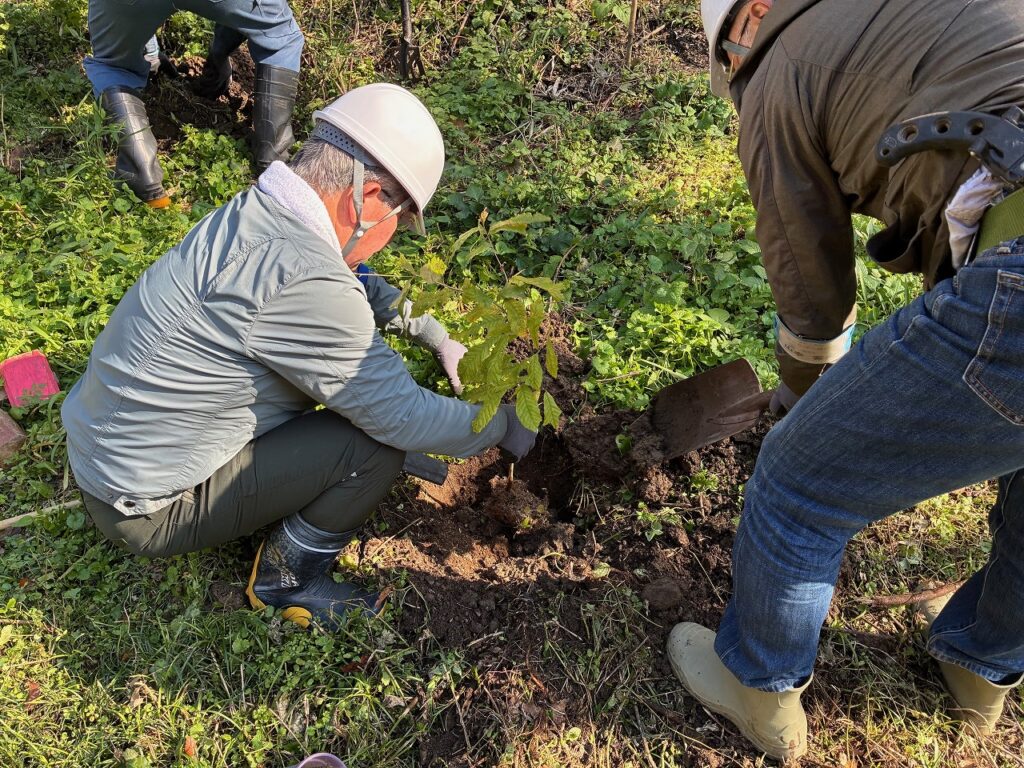 さと☆ぼら講習はカントリーヘッジの整備と植樹を行いました。植樹に使用した苗は、沢山池の里山で採取したコナラとクヌギの実生苗です。