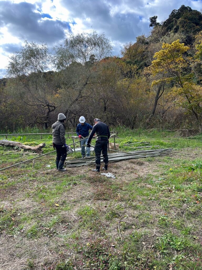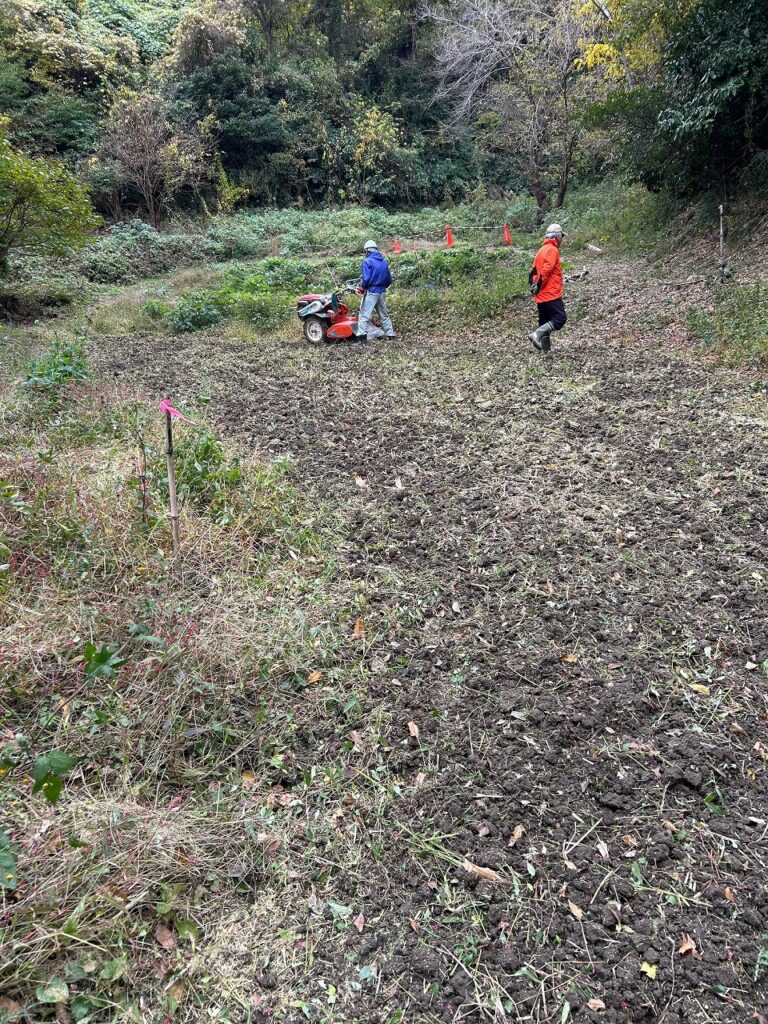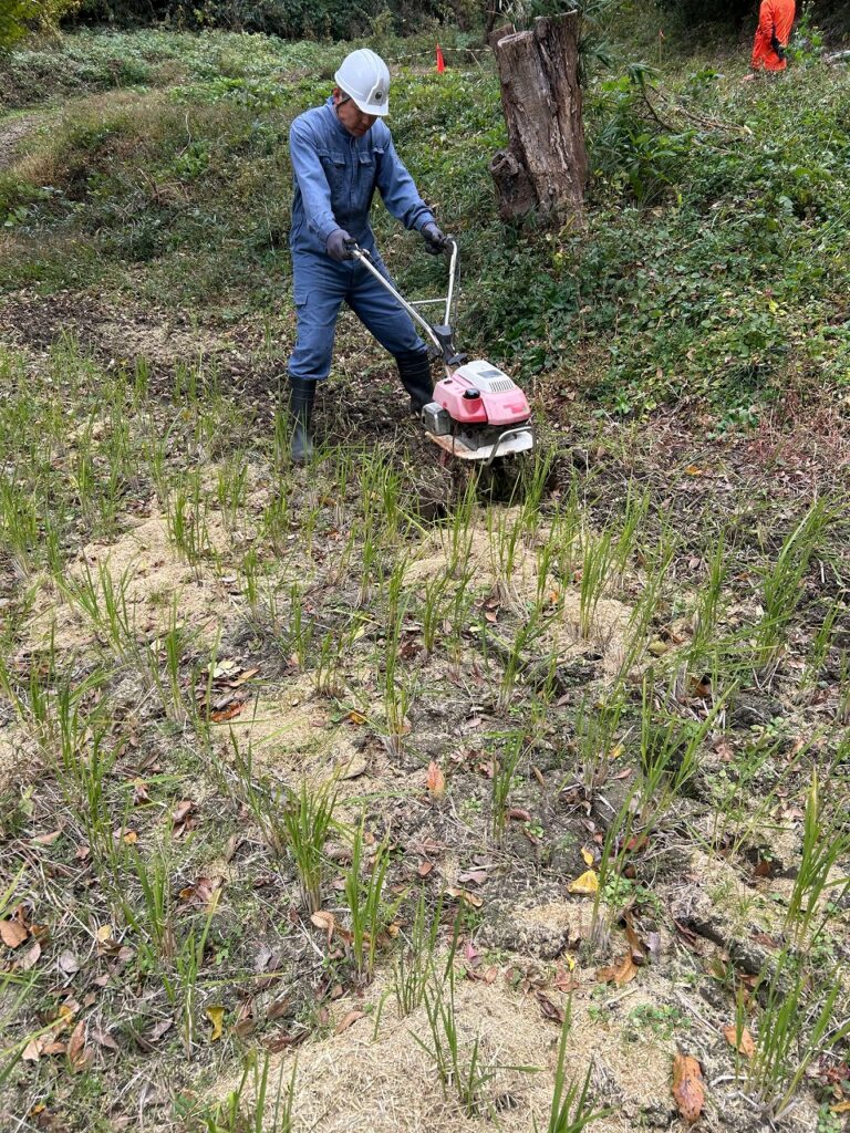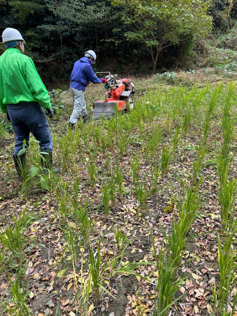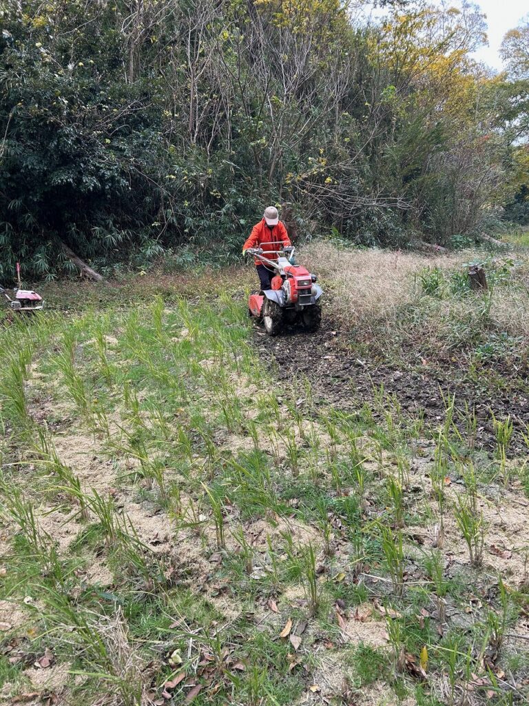 - 活動内容:AM 門松作り準備(竹切り出し、竹水洗い)、田起こし