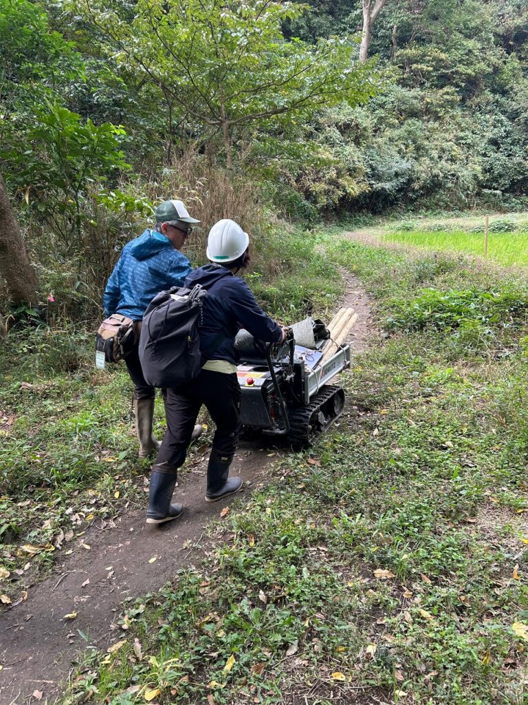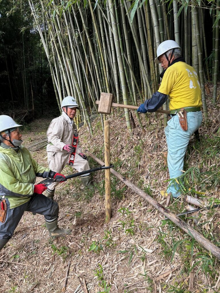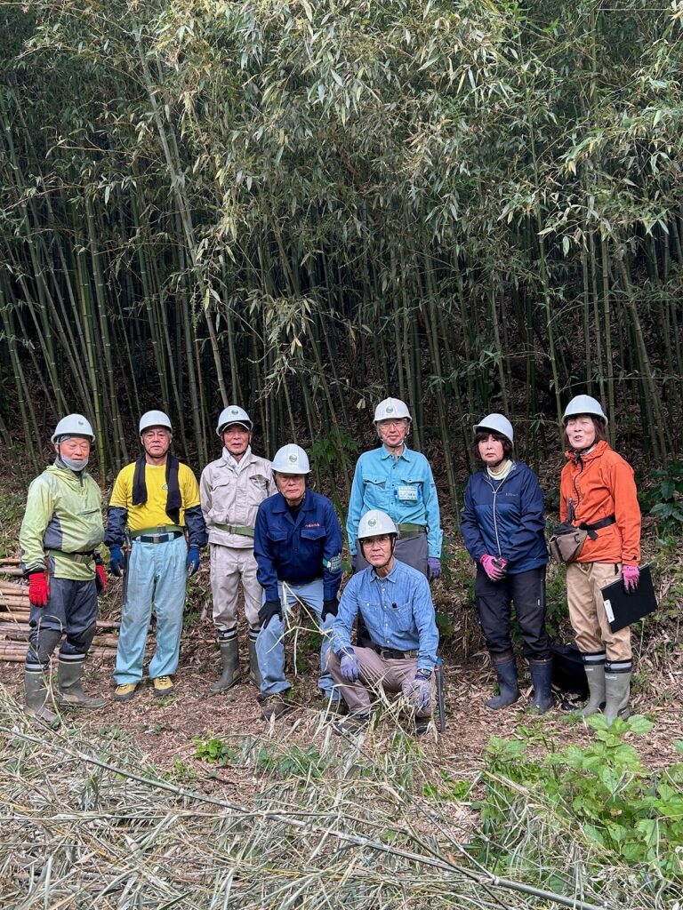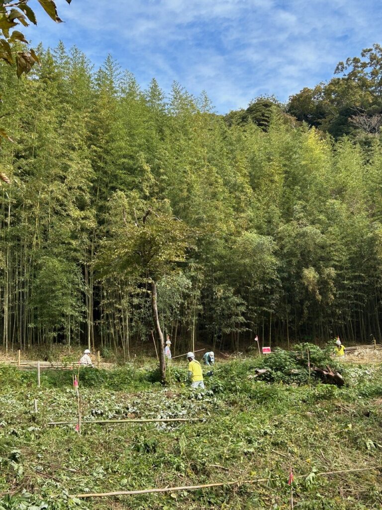 先週、竹林から搬出した土留め用の太いタケを土留めにしました。モニタリング場所のタケの本数を確認、35本程度までに刈り取りました。