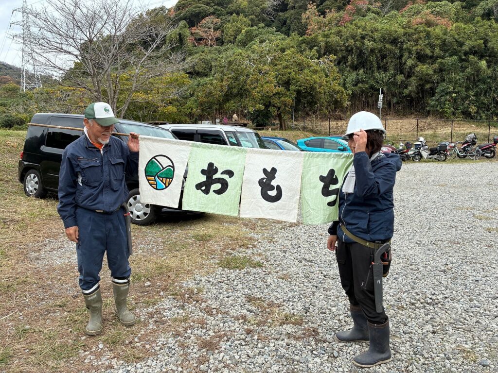 収穫祭で提供する御餅のテントに掛ける、会員が手作りした暖簾です。