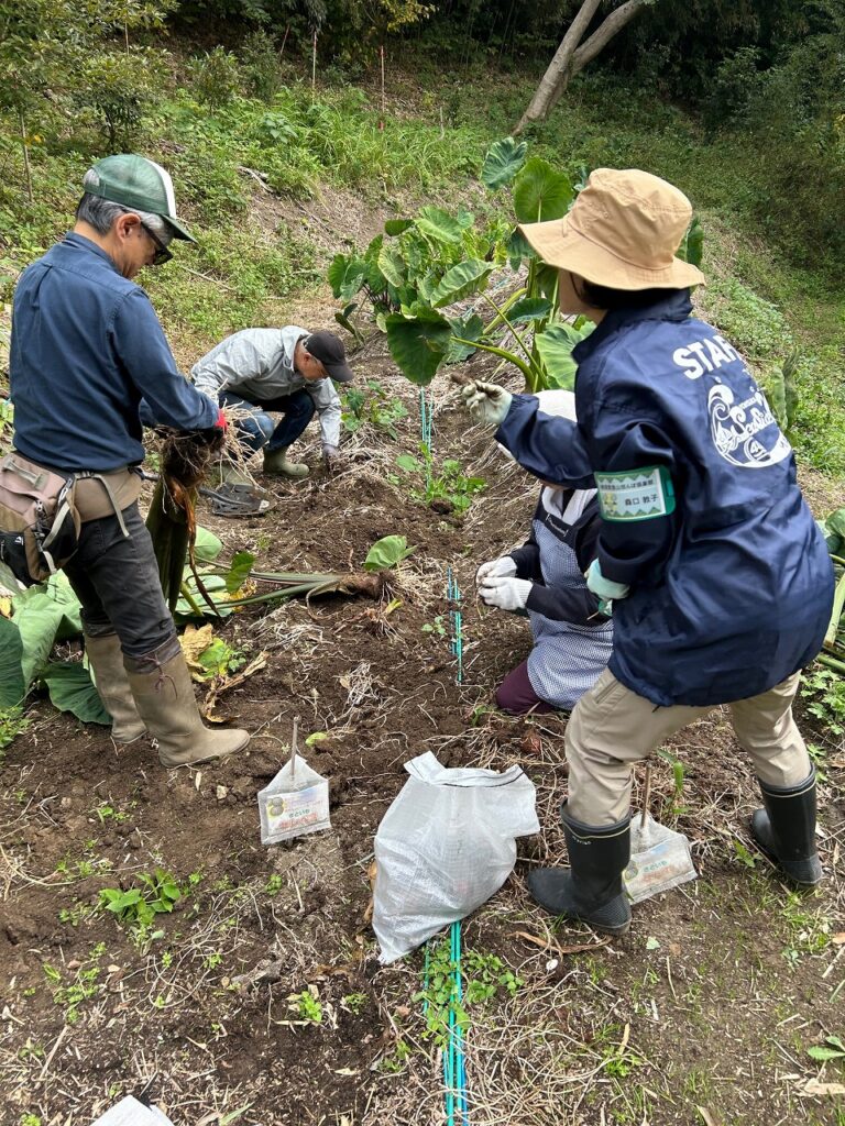 • AM 交付金活動、サトイモ収穫、果樹地管理