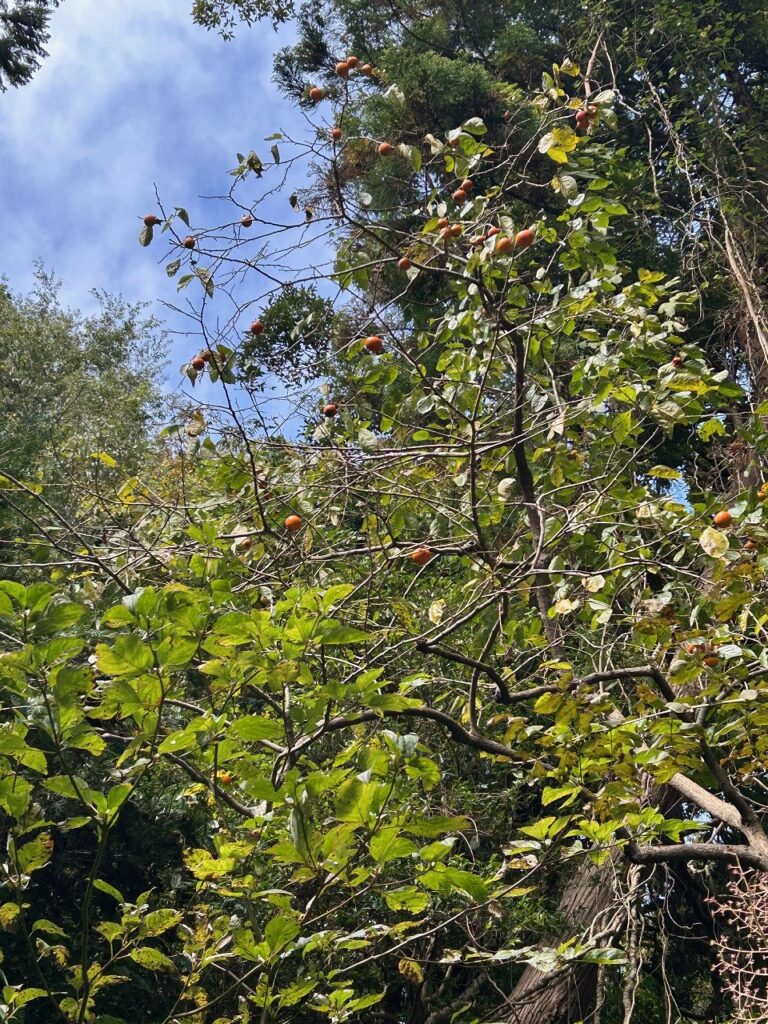 果樹地の近くの斜面に小さなカキが実っています。