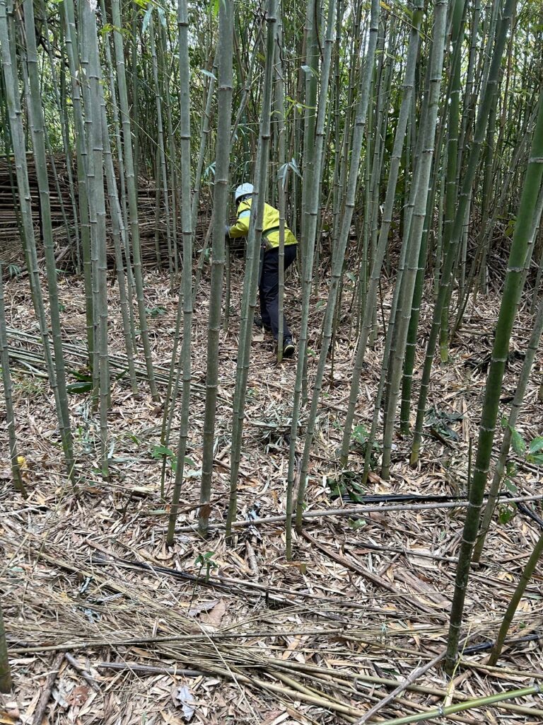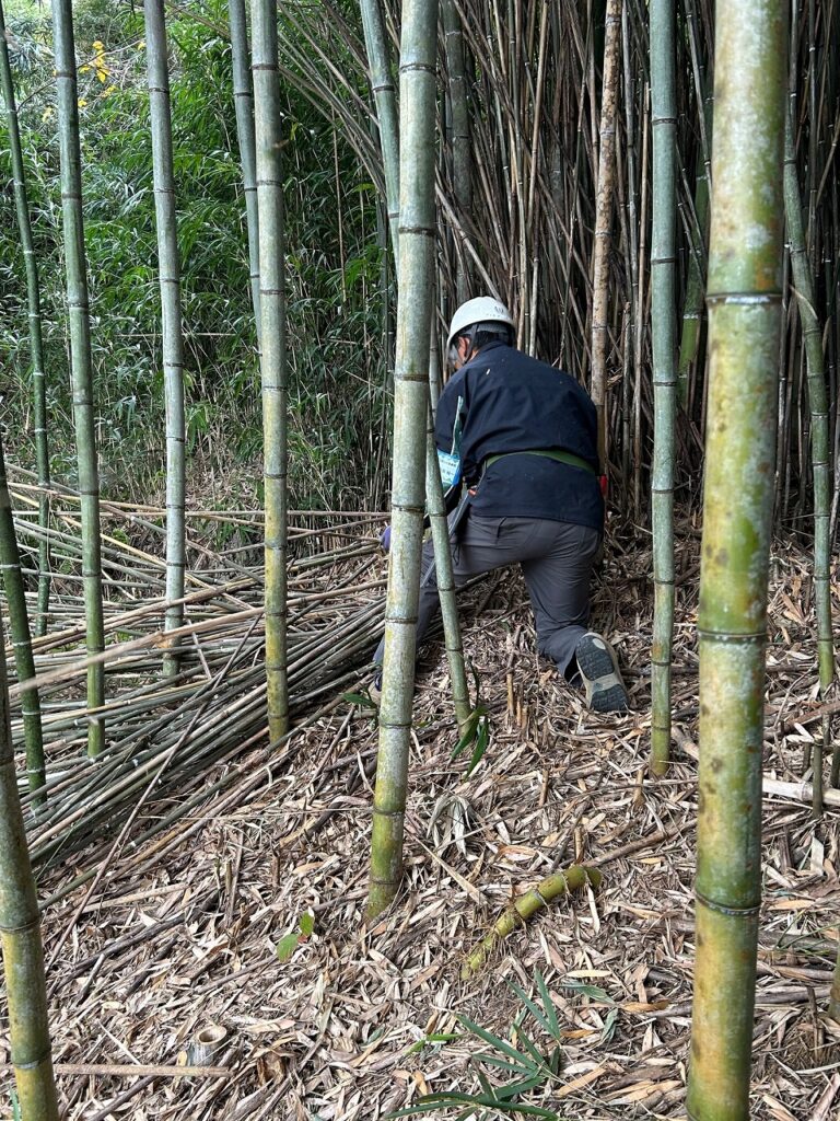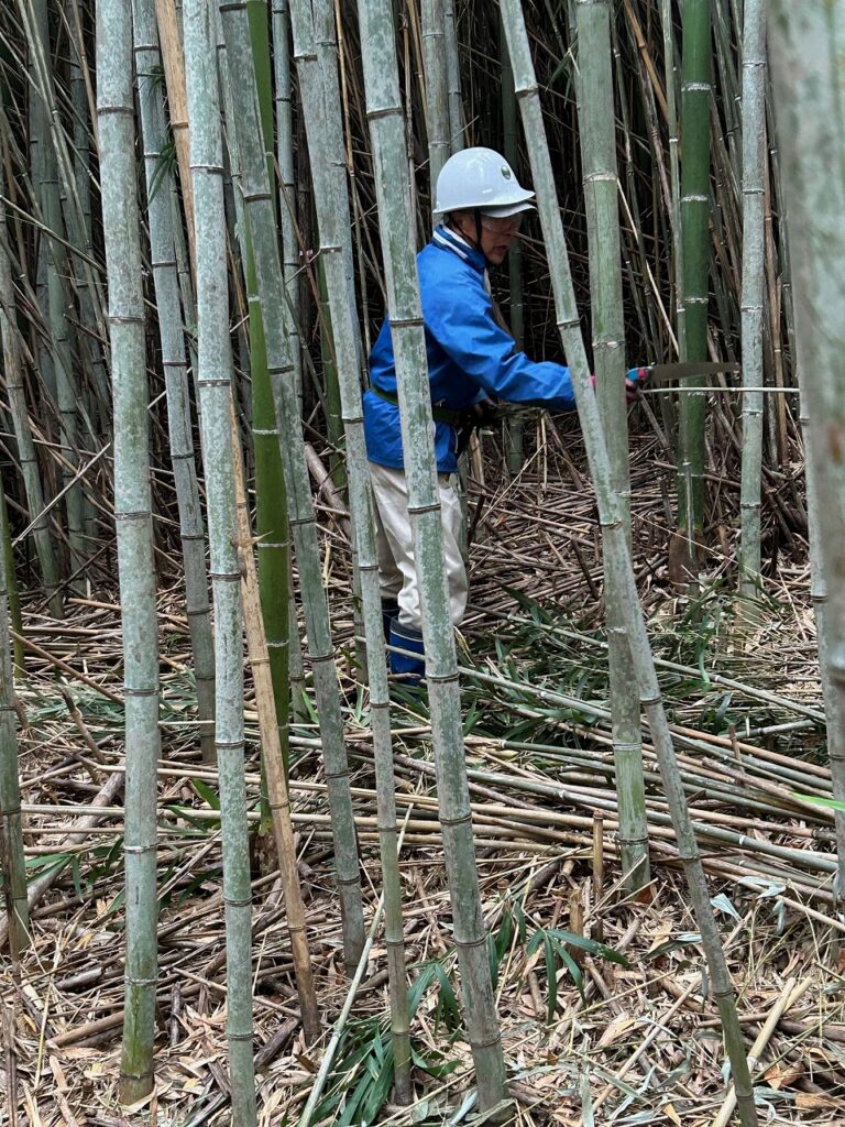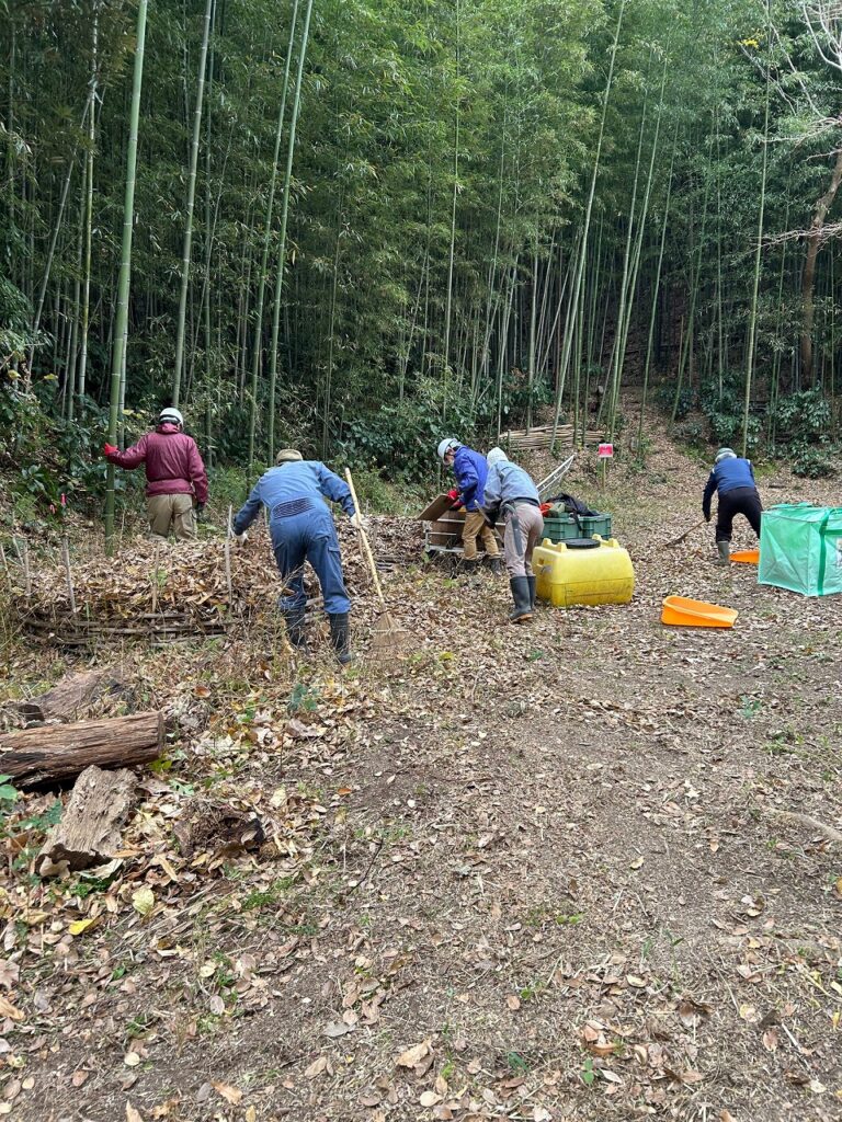 林野庁交付金活動を行う竹林の前で集合写真を撮り活動開始です。来年の2月までに竹林整備を完了するため、参加者全員で協力しながら作業を進めます。