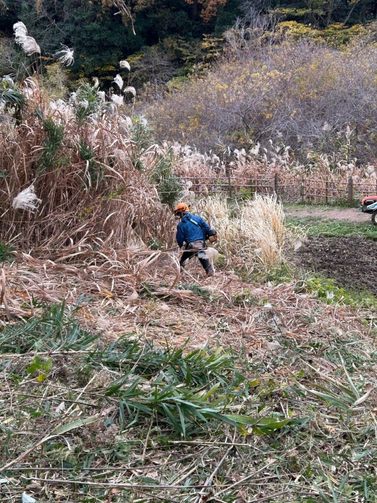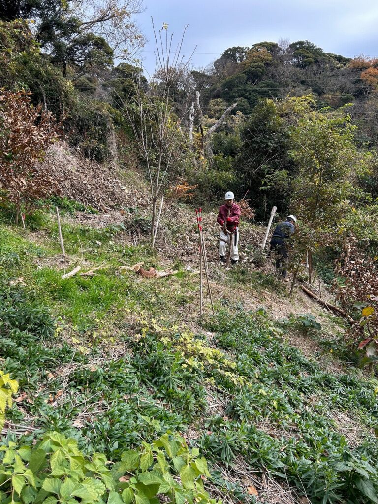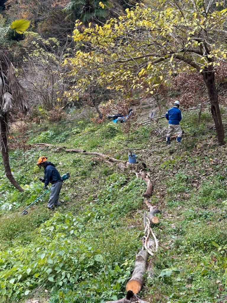 クリの木上の斜面を整備しています。
