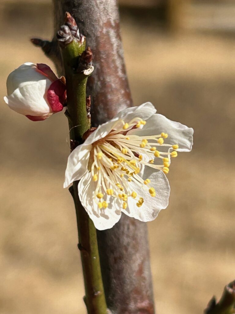 昨年植樹したウメの木が無事に根付き、可憐な花を咲かせています。これからの成長が今から楽しみです。