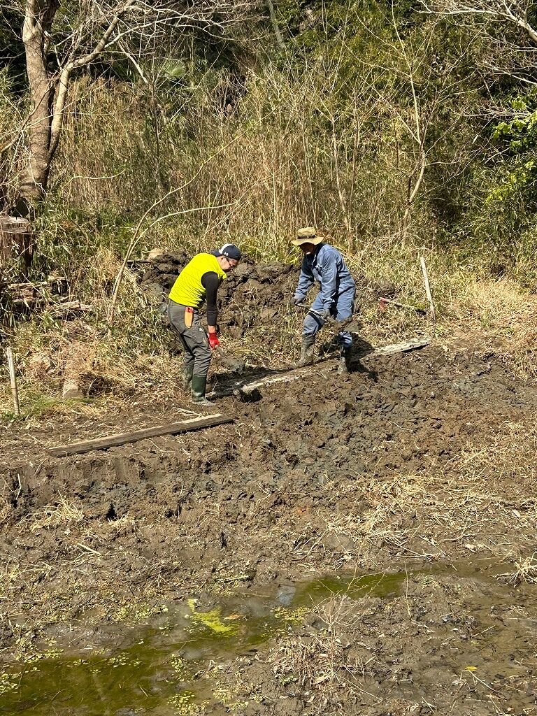 - 活動内容:AM ため池整備、オギヨシ刈り、みず道補修準備、畑管理