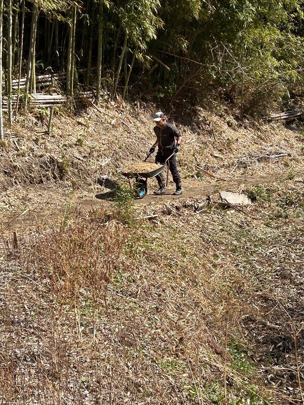 5段田んぼ、南田んぼの草刈り、先週チップ化したオギ・ヨシを南田んぼに撒きました。