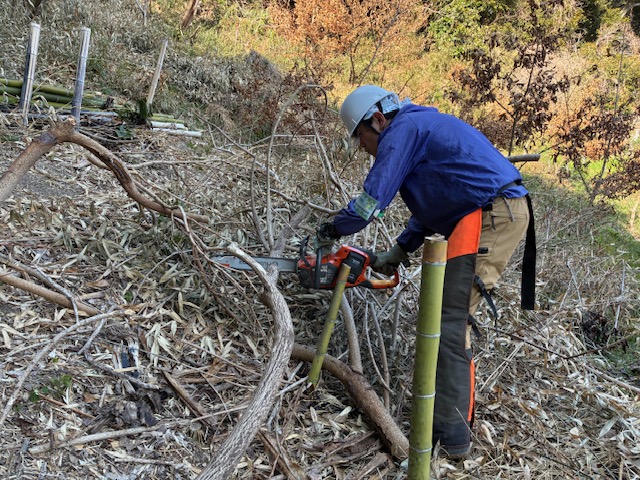 樹林地整備を実施しました。現場は急斜面で足場が悪いため、細心の注意を払い、安全を最優先に作業を進めました。