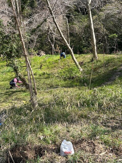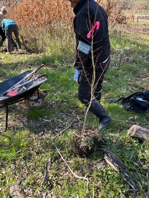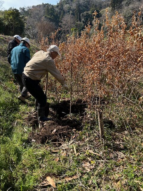掘起こした苗木を親子田んぼからカントリーヘッジまでの山側に植樹しました。