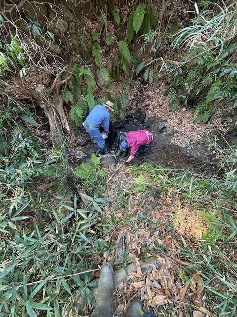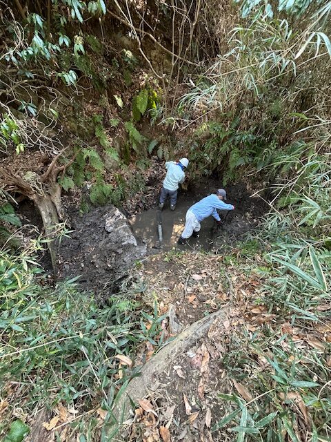 午前の作業に引き続き、5段田んぼ取水堰の土砂除去を行いました。