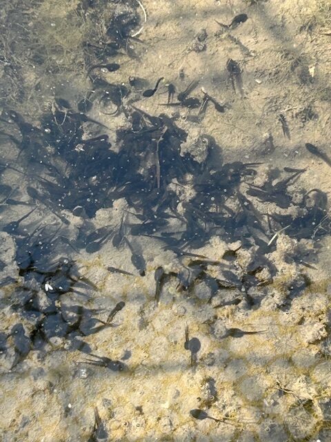 2月28日の活動報告で紹介したヤマアカガエルの卵が無事に孵化しました。オタマジャクシたちが水の中を元気に泳いでいます。
