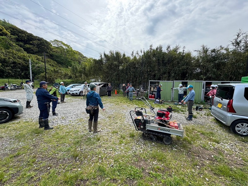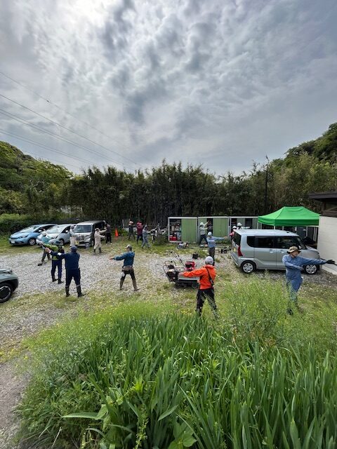 空気は少し冷たいですが、作業するにはちょうどいい気温です。ラジオ体操で体をほぐし、今日の活動内容を確認したあと、各自の活動場所へ移動します。