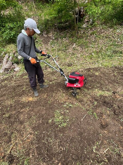 今年の収穫祭で提供を予定している、サトイモの作付け準備に耕運機「こまめ」が活躍しています。