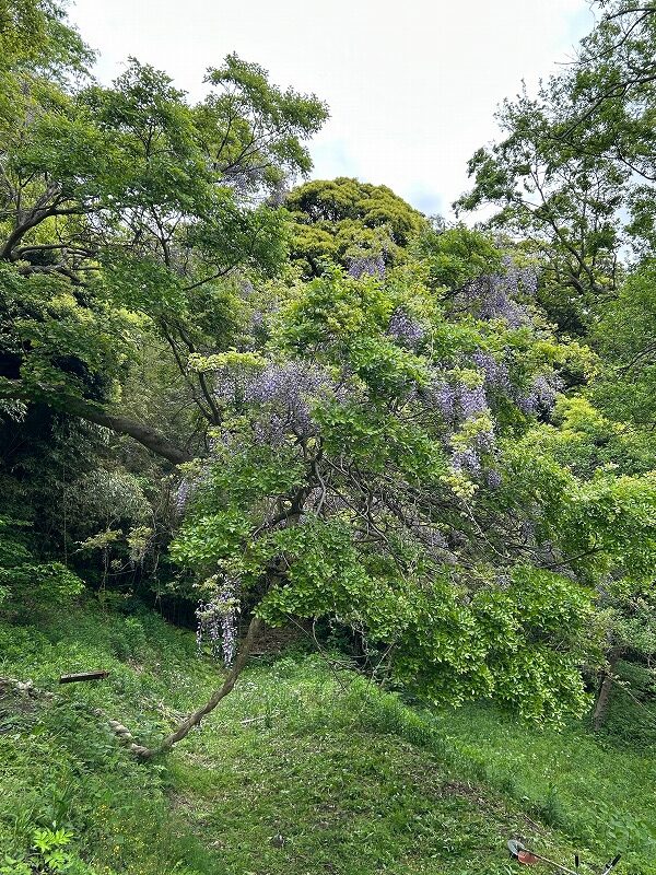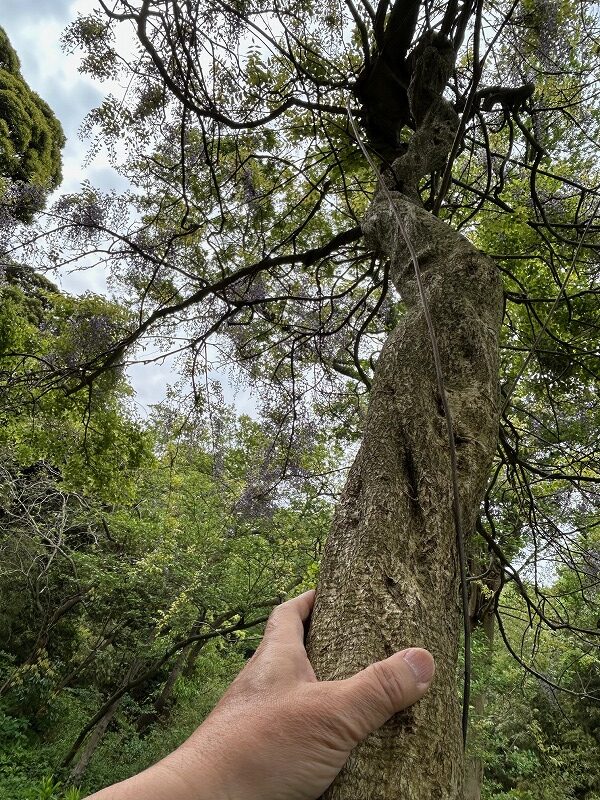 畑の横にあるフジの蔓(つる)は、直径が10cm以上もあり、見事な花を咲かせています。