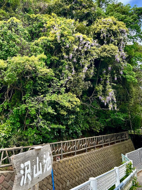 沢山池の里山を歩くと、あちらこちらでフジの花が咲いています。