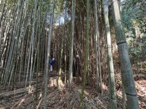 秋晴れの気持ちのいい朝を迎えました。 先週、竹林から搬出した土留め用の太いタケを土留めにしました。モニタリング場所のタケの本数を確認、35本程度までに刈り取りました。 サトイモ(土垂どだれとセレベスの2品種)を収穫しまし […]