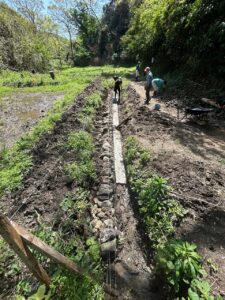 気温の上昇とともに、春の訪れを感じる時期を迎えました。 5段田んぼ、南田んぼの草刈り、先週チップ化したオギ・ヨシを南田んぼに撒きました。 南田んぼの用水路崩落防止に鉄菅を杭にして石垣を作りました。 毎年、親子田んぼは穴が […]